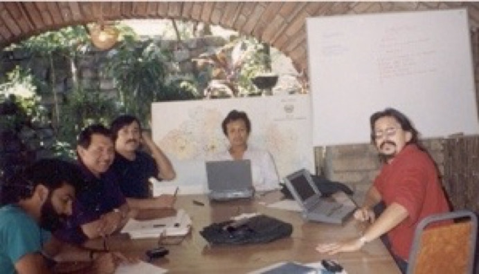Staff meeting at the Novo Hotel, San Salvador.