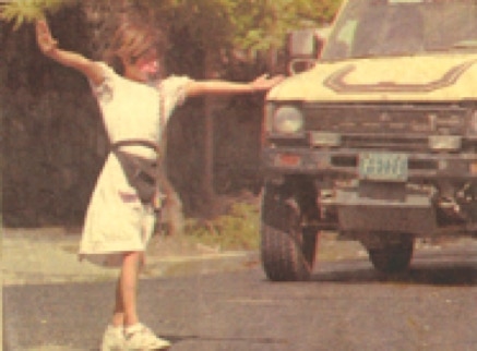 In the photo she has stopped traffic to her back, stopped traffic to her left side, stopped traffic with her right hand, and is about to direct traffic with her left hand.